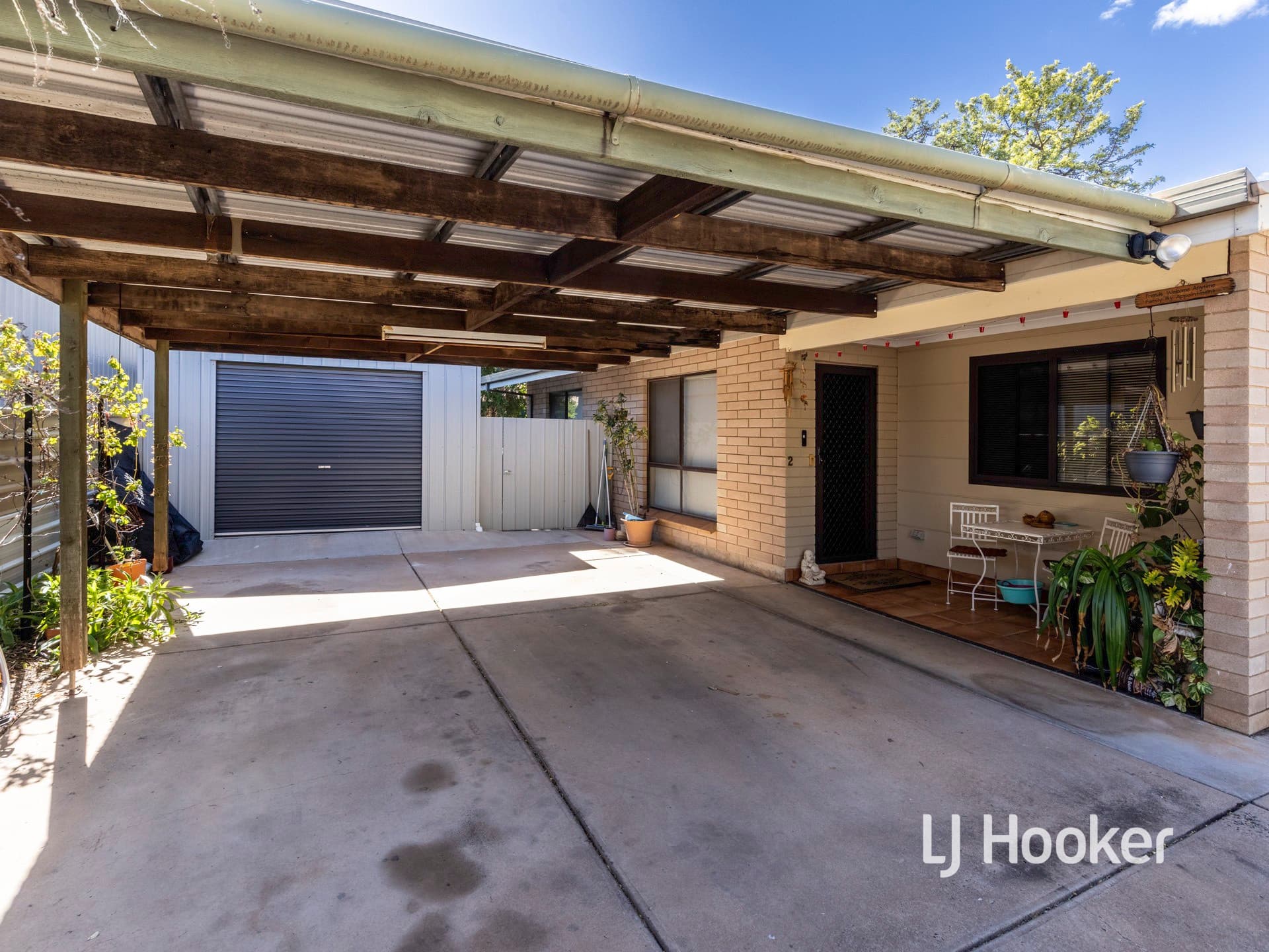 - Powered garage, roller door, side door
