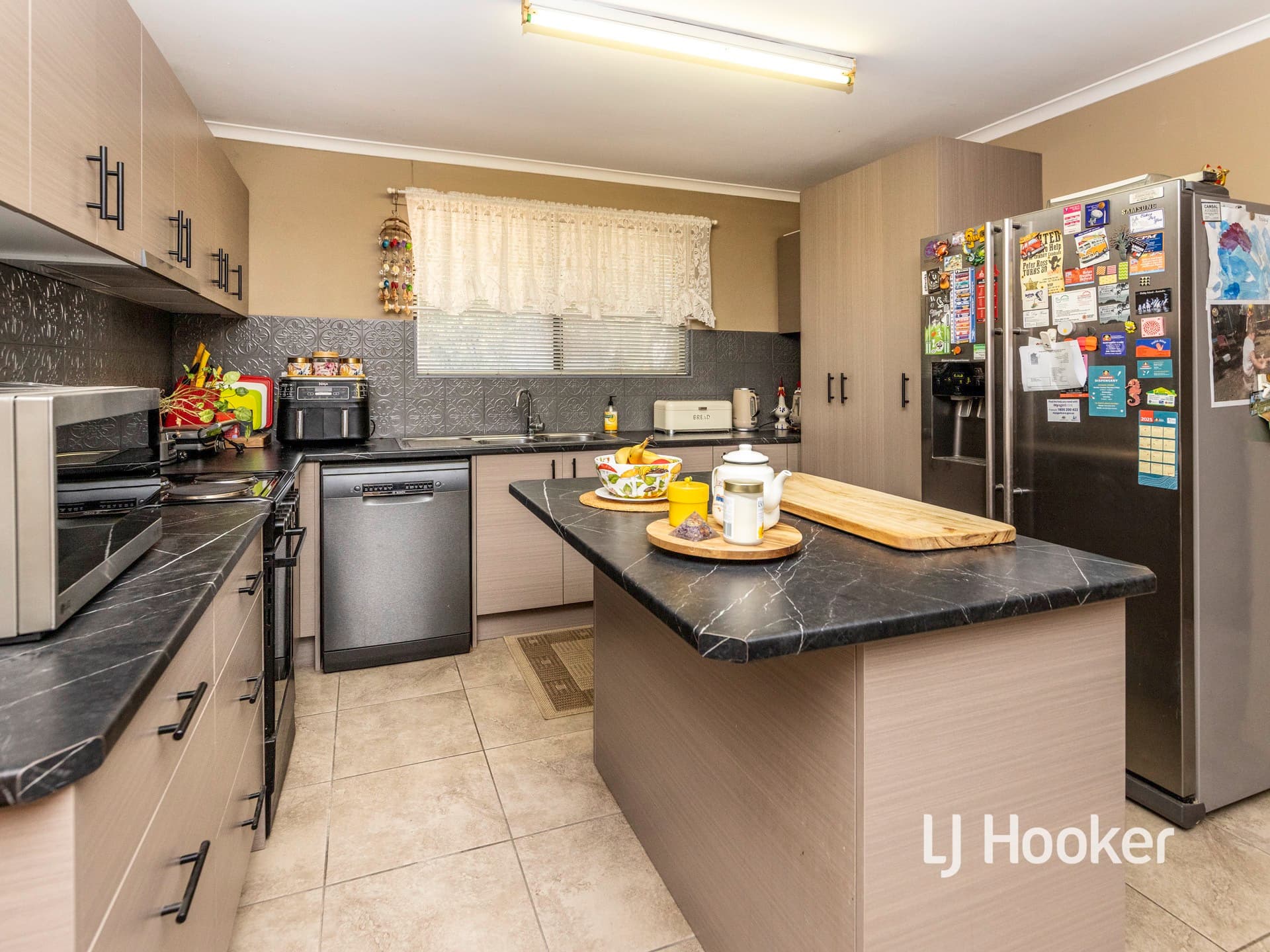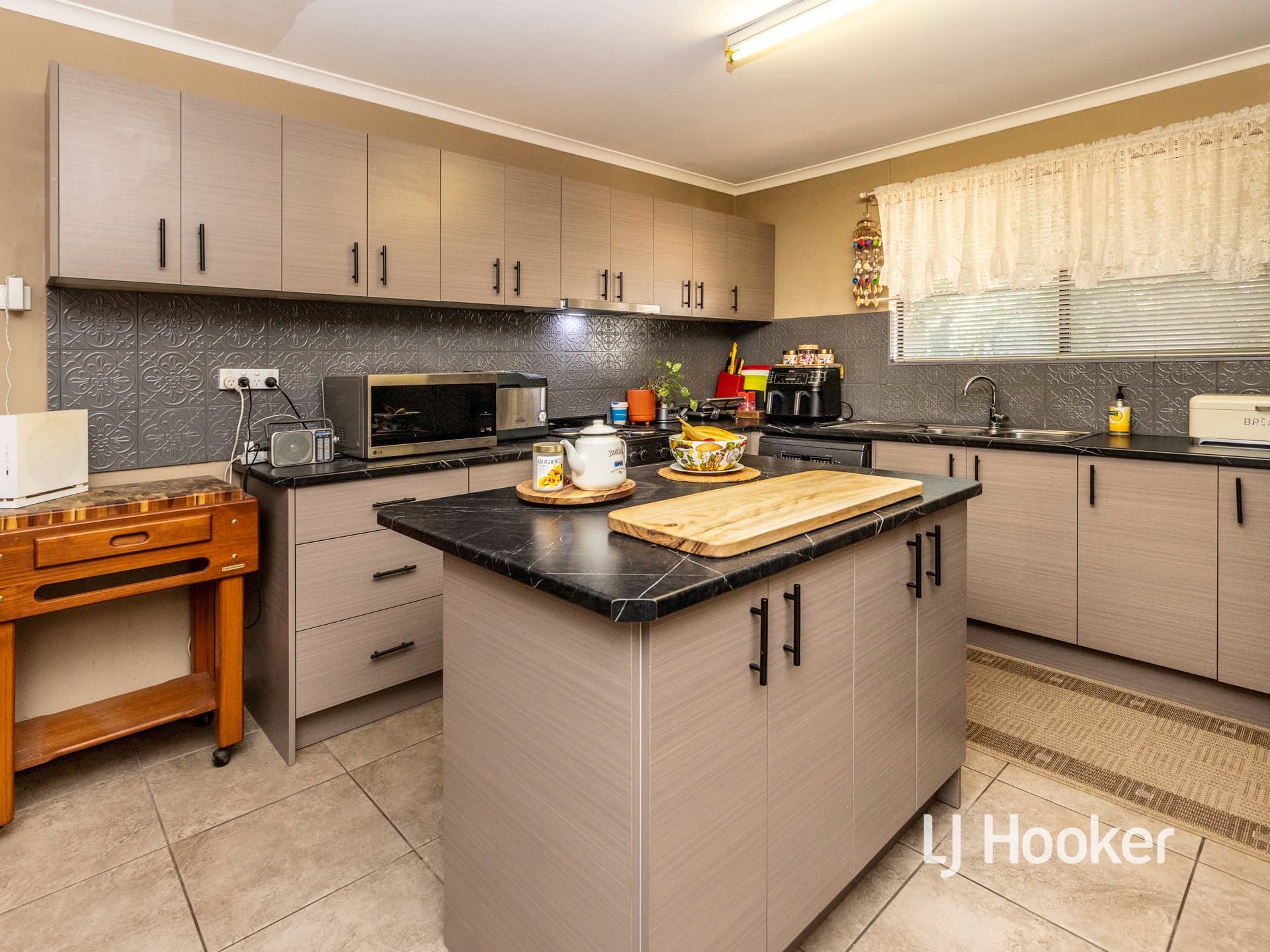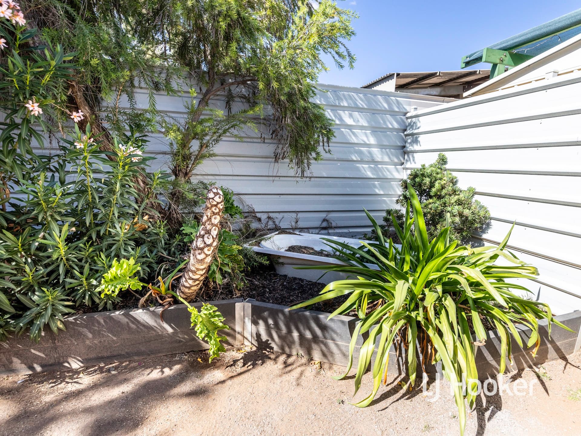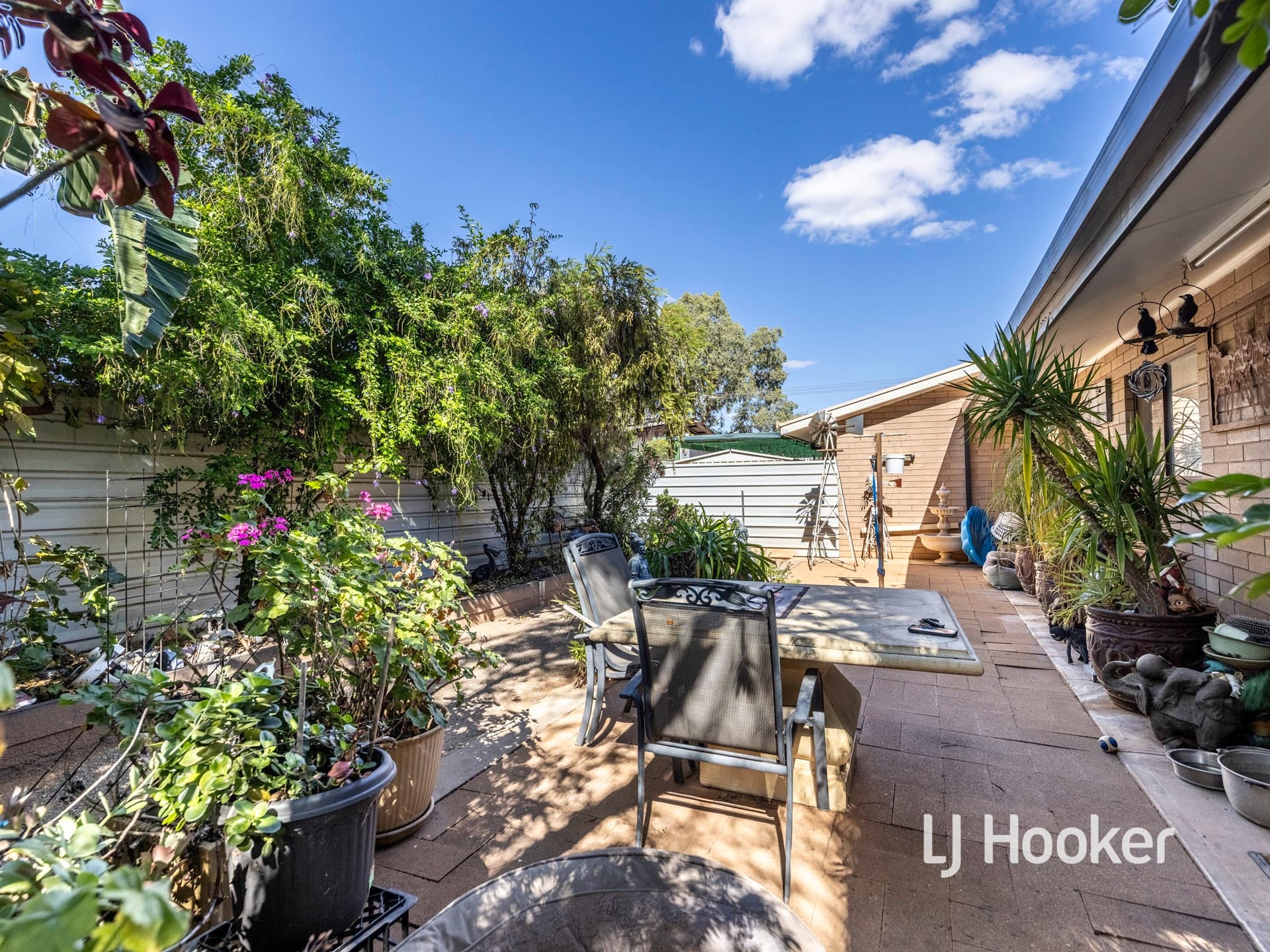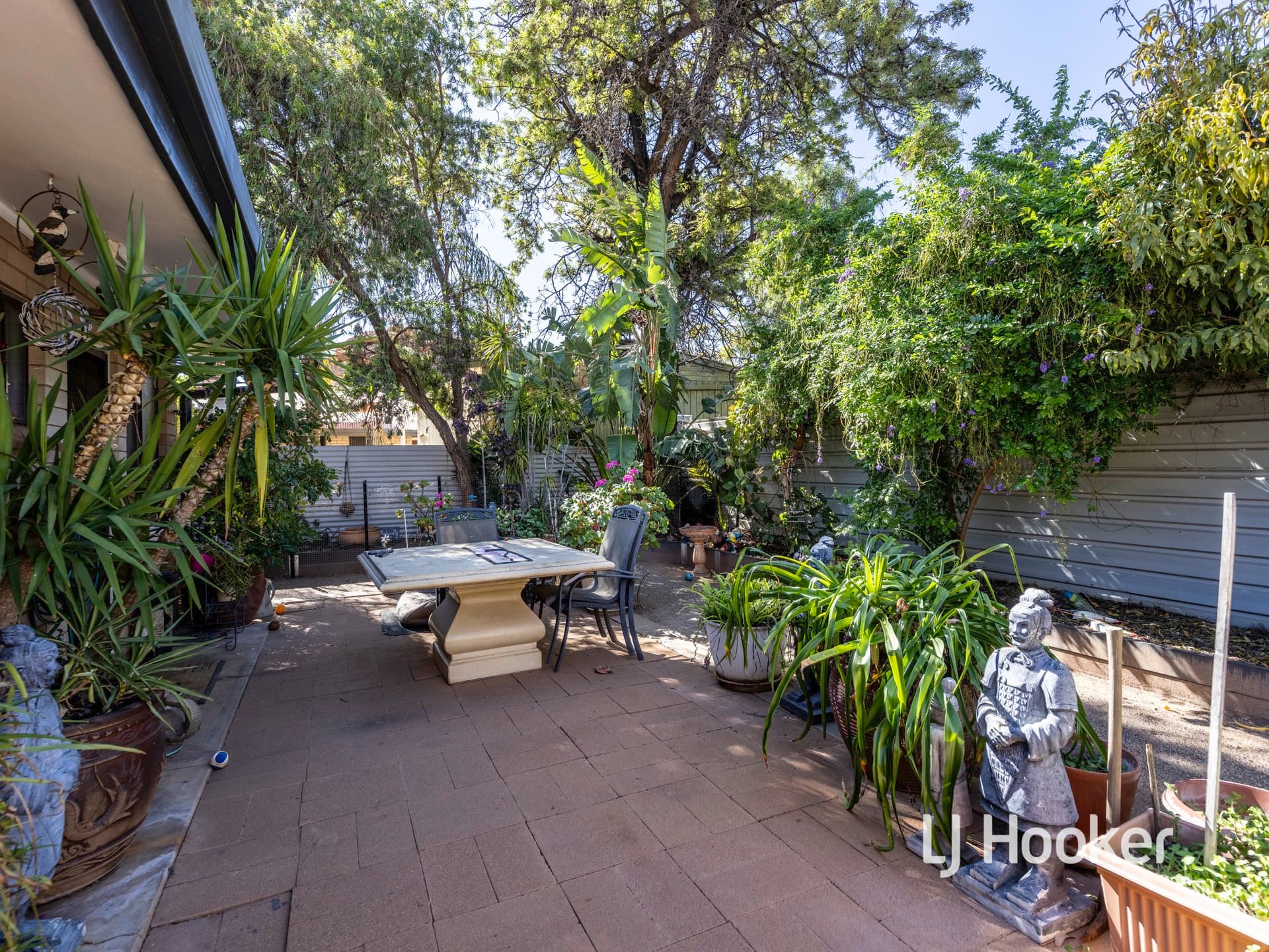 The oversized laundry leads to the well organised and lush back garden. There are well established trees, shrubs and healthy garden beds.